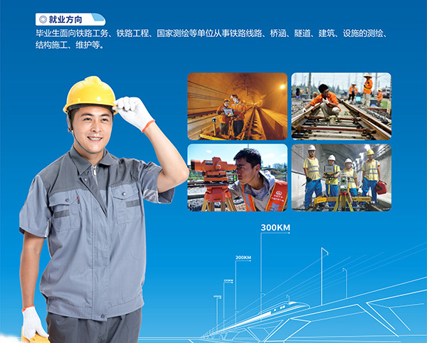 毕业生面向铁路工务、铁路工程、国家测绘等单位从事铁路线路、桥涵、隧道、建筑、设施的测绘、结构施工、维护等。